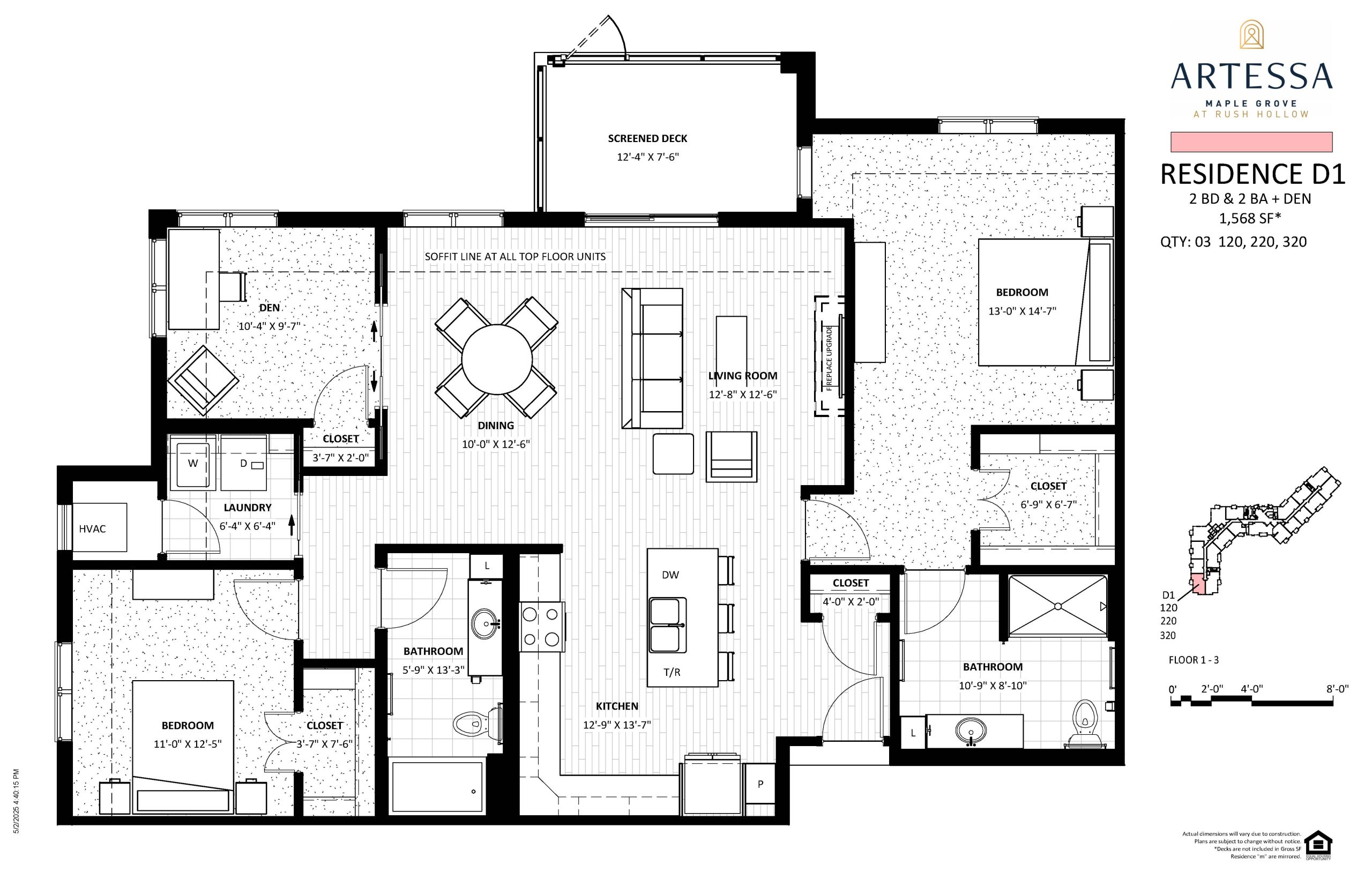 This 1,568 SF residence at Artessa Maple Grove features 2 bedrooms + Den / 2