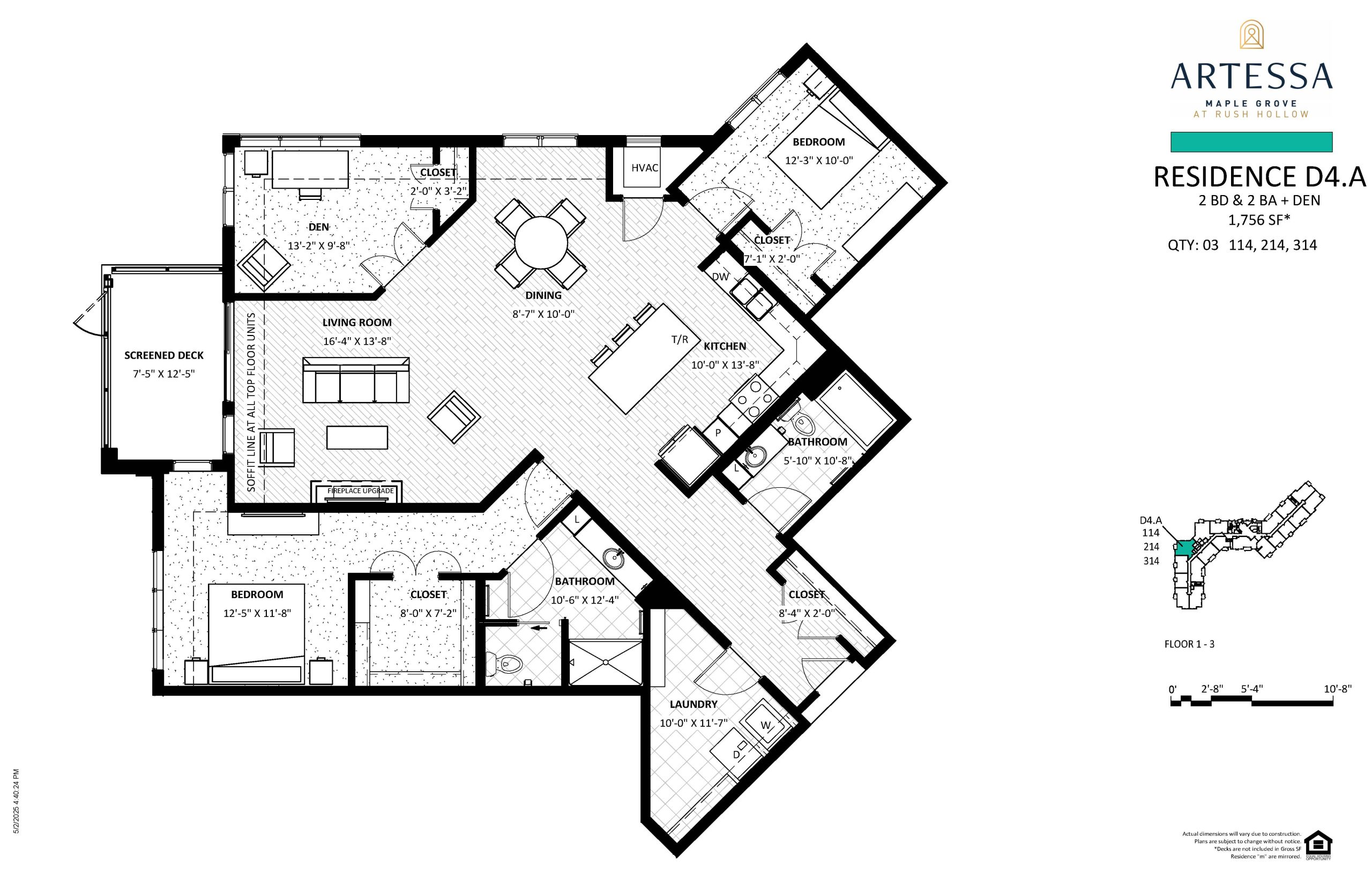 This 1,756 SF residence at Artessa Maple Grove features 2 bedrooms+ Den / 2